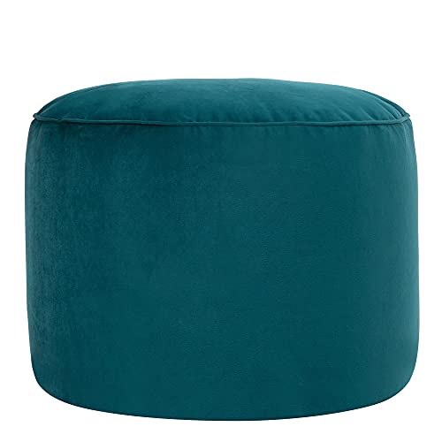 Icon Pouf Rond, Milano, Bleu Canard, Velours, Pouf Repose Pi...