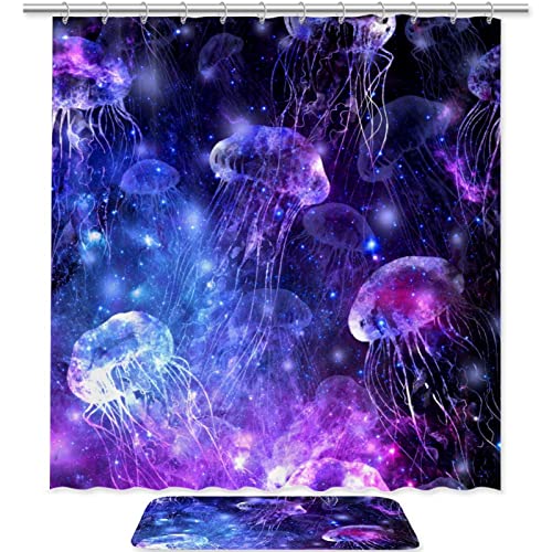 Rideau de Douche Polyester Imperméable Galaxie Méduse Pourpr...