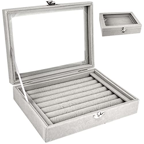 Porte Bague, Presentoir Bague en Velours Gris avec Couvercle...