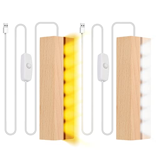 YOAG Rectangle Bois LED Base Lumière 2 Pièces LED en Bois
