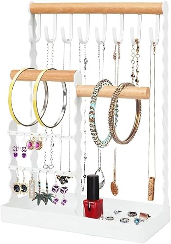 ✅Support Bijoux: 10 crochets pour colliers, 60 trous pour 3...