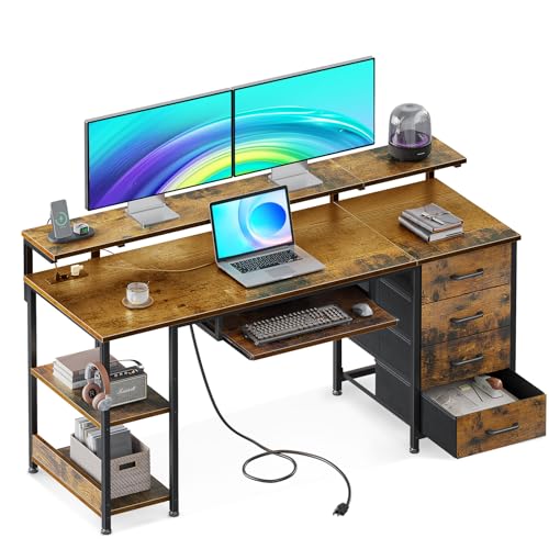 ★Bureau avec Prises★:Devoko bureau d''angle vous offre un d...