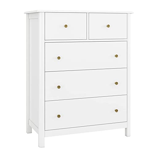 Hocsok Commode, 5 tiroirs, Meuble de rangement blanc bois