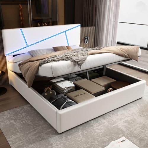 Lit Rembourré Avec Bandes Lumineuses LED Sommier À Lattes Li...