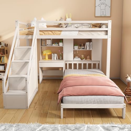 【Design élégant】Ce lit superposé avec bureau et étagères i...