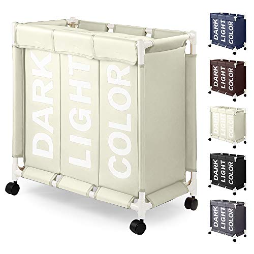 Rieeyrslza Panier à Linge Triple avec Roulettes 90L Sac à Li...