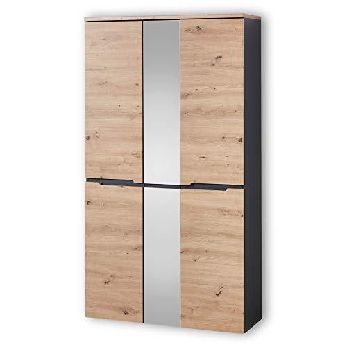 LOEFME Armoire Gris, Armoire à Angement avec Tringles et Pen...