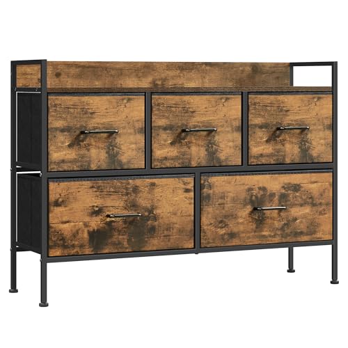 SONGMICS Commode Tiroirs Rangement Acier Marron Rustique