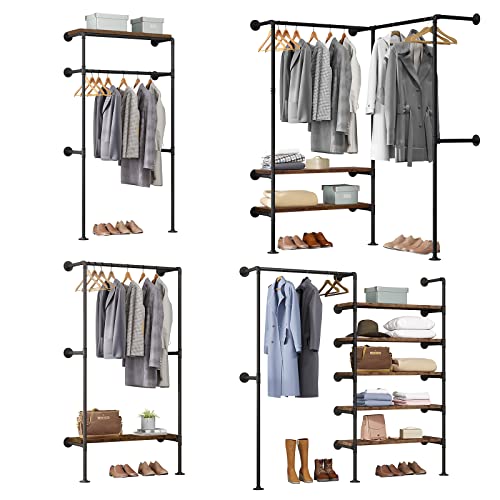 Portant Rangement Vêtement Industriel Noir et Marron Rustiqu...