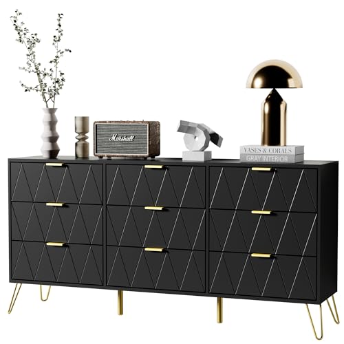 UEV Rangement 9 tiroirs, Meuble rangement noir doré, Style S...
