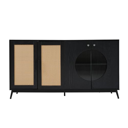 Buffet de cuisine à 4 portes avec portes en rotin en verre,...