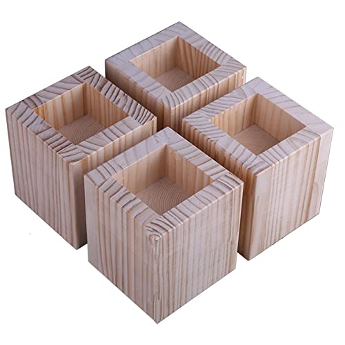 Lot de 4 Pieds en Bois Véritable, Rehausseurs de Meubles Sup...