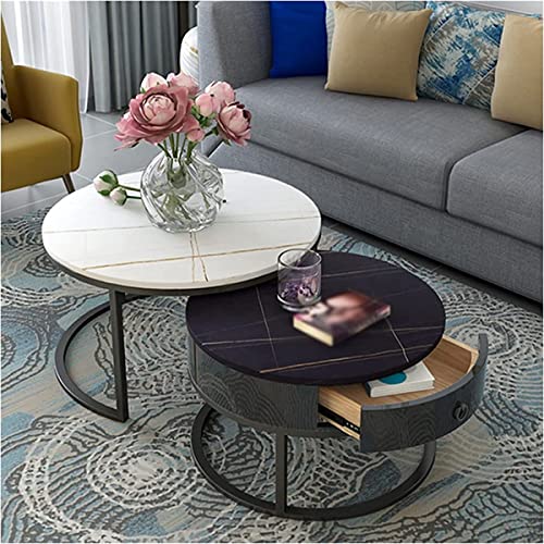 WOLTU Lot de 2 Tables de Chevet Ronde, Table Basse avec tiro...