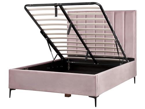Lit double avec sommier à lattes et coffre de rangement inté...