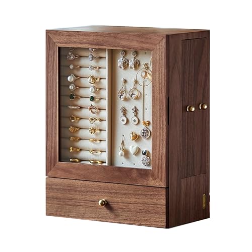 Boîte Bijoux Bois Rangement Vertical Tiroirs Latéraux Fenêtr...