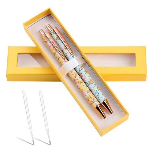 Goernpn Lot de 2 stylos floraux métalliques, recharges d'enc...