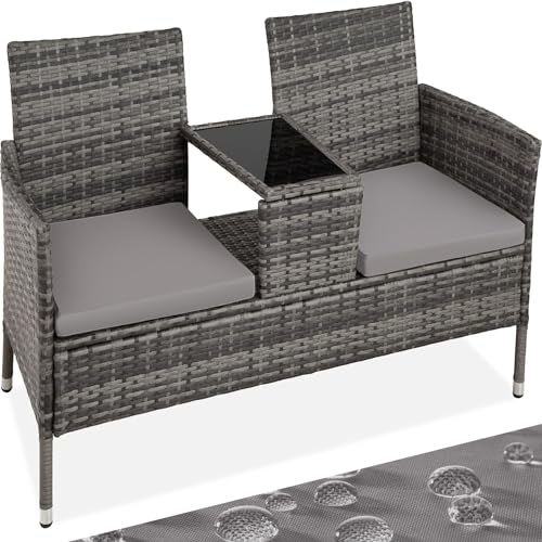 TecTake Salon de Jardin Résine Tressée Canapé Banc avec Tabl...