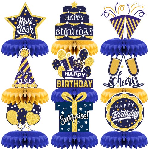 Lot de 9 centres de table d''anniversaire 3D bleu marine et...