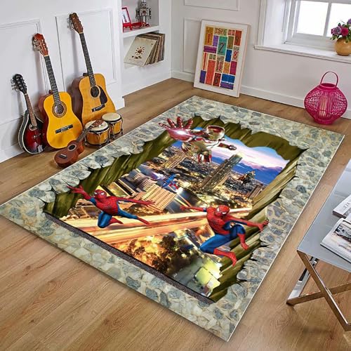 KUentz Anime Tapis, 3D Spiderman Imprimé Cristal Tapis Velou...