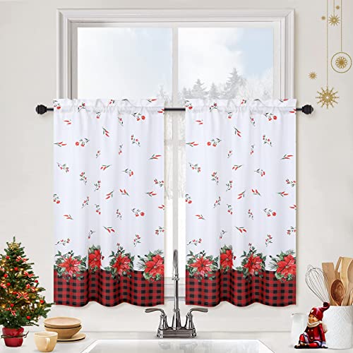 JOLLYTOP Rideaux blancs écossais et floral pour Noël