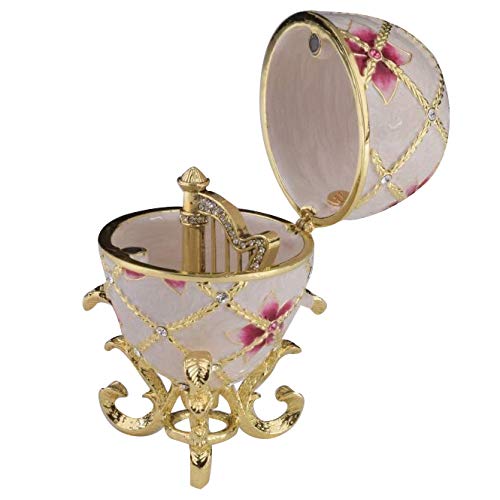 Œuf russe blanc avec fleurs et harpe surprise à l''intérieur...