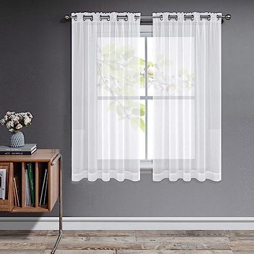MRTREES Rideaux Voilage Court Rideau Blanc Semi-Transparent...