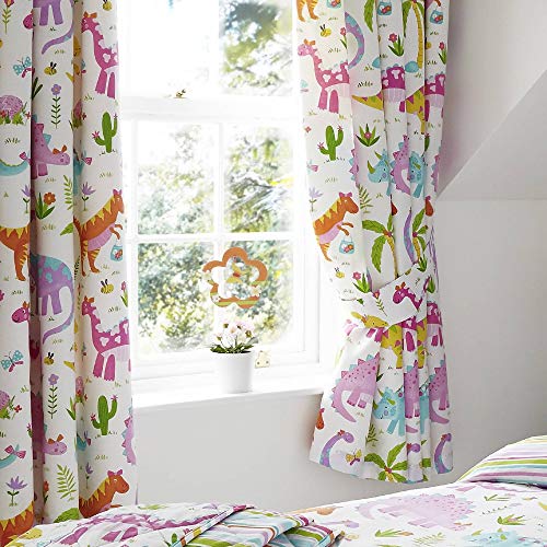 Happy Linen Company Rideaux tête plissée Dinosaures Rose Bla...