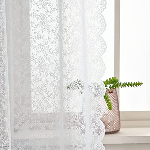 Lot de 2 rideaux dentelle blancs, voilages floraux roses pou...