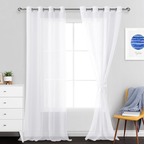 Jiuzhen Rideau Voile Semi-Transparent Blanc