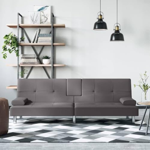 ZEYUAN Canapé-lit avec Porte-gobelets Gris Similicuir,Lit Ba...