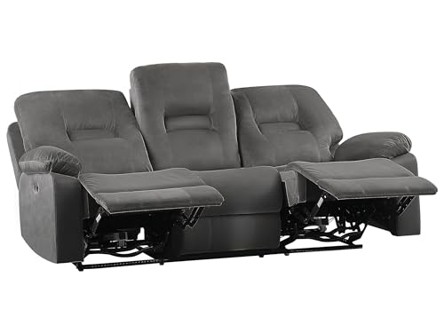Canapé de Salon en Velours Gris 3 Places avec Port USB et LE...