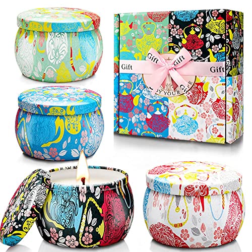 Cadeau Bougies Parfumées 4*5.65 Oz Cire Soja 120 Heures