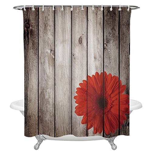 Rideau de douche décoratif polyester marron vintage 6 croche...