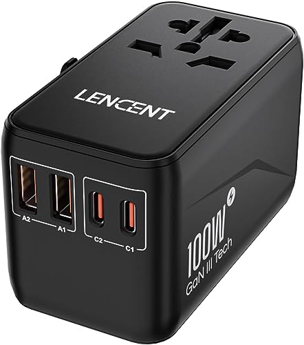 LENCENT Adaptateur de Voyage Universel GaN3 100W Chargeur In...