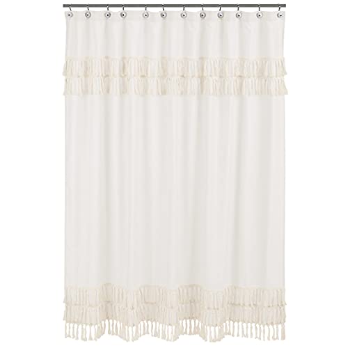 Rideau douche minimaliste blanc cassé macramé franges coton...