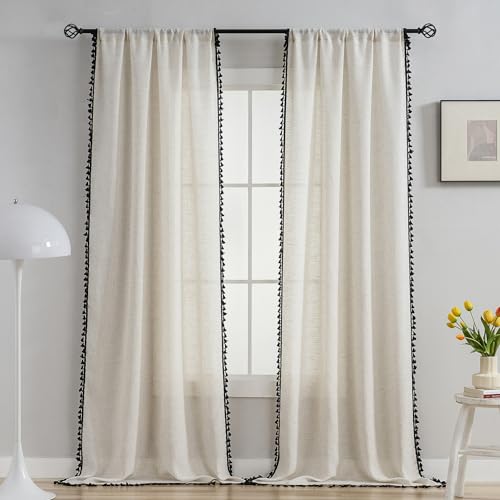 WZDD Lot 2 Voilages Chambres Effet Lin Fenêtre Rideaux Brodé...