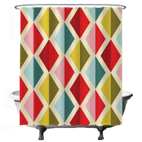 Ulticool Rideau de douche Multicolore Diamants Vintage Rétro