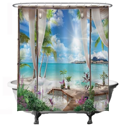 Ulticool Rideau de douche Plage et Mer, Nature 180x200 cm
