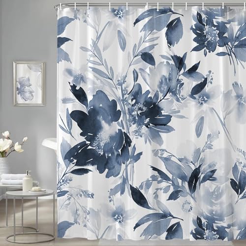 Rideau de Douche Anti Moisissure Bleu Fleurs 180X200