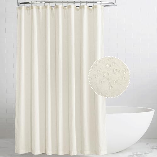 YISURE Rideau de douche 100 x 200 cm - Beige - En lin - Tiss...