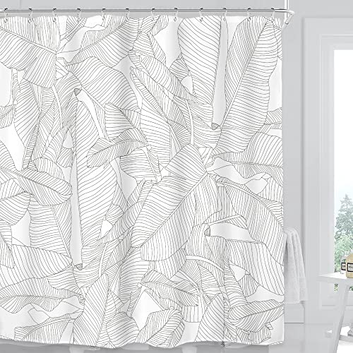 Minimaliste Rideau de douche en feuilles tropicales - Noir e...