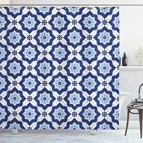 Bleu Rideau de Douche Azulejo, Tissu Décor Salle de Bain