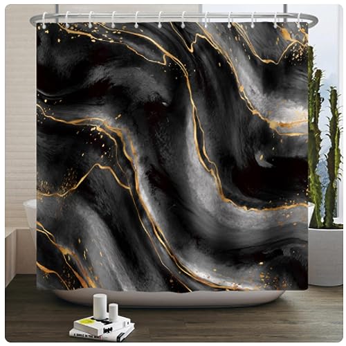 Hong Rideau de Douche Marbre Paillettes Rose Noir Polyester...