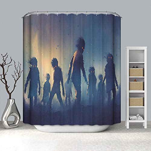 Rideau douche vintage imprimé zombie polyester bleu 180x180...