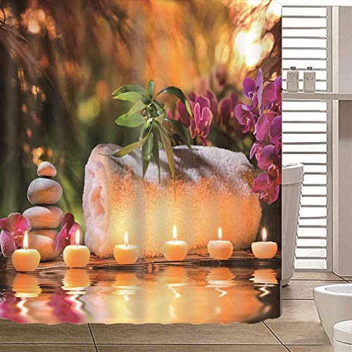 Rideau de Douche 180x200, Orchidée Zen Bambou 3D Imprimé Rid...