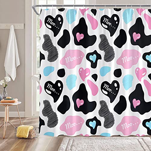 Rideau de douche en cuir de vache noir, bleu rose, imprimé f...