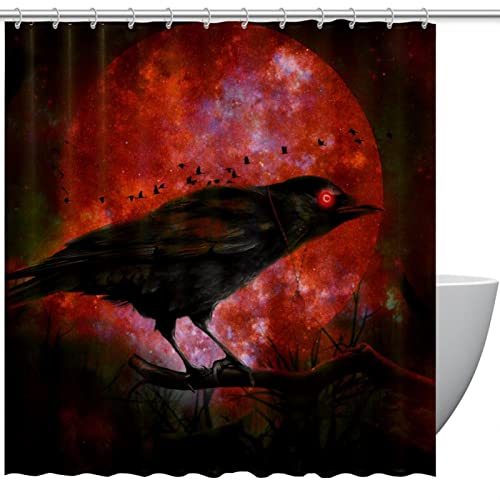 Rideau de Douche Galaxie Corneille Lune Univers Rouge