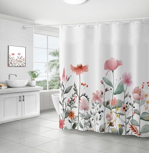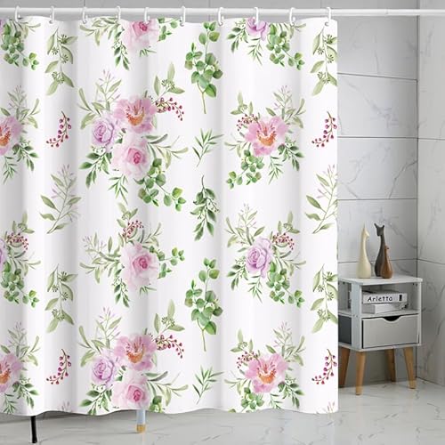 Ttincceer Rideau de Douche Floral avec Crochet Rose Aquarell...