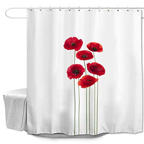 Bonhause Rideau de Douche Coquelicots Fleur Rouge 180 x 180...