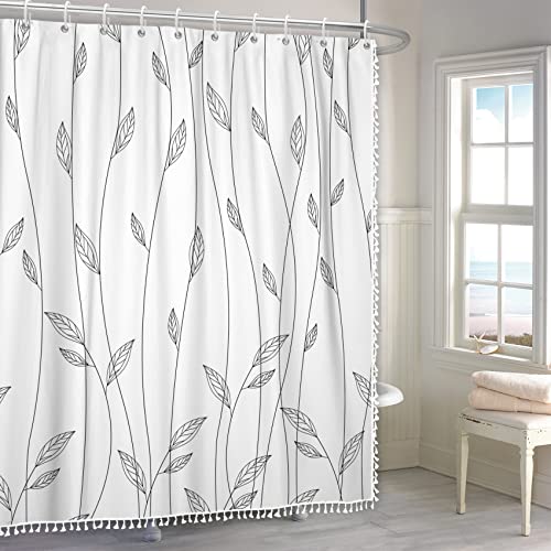 MIRRORANG Rideau de Douche Feuilles Blanches avec Pompons, R...
